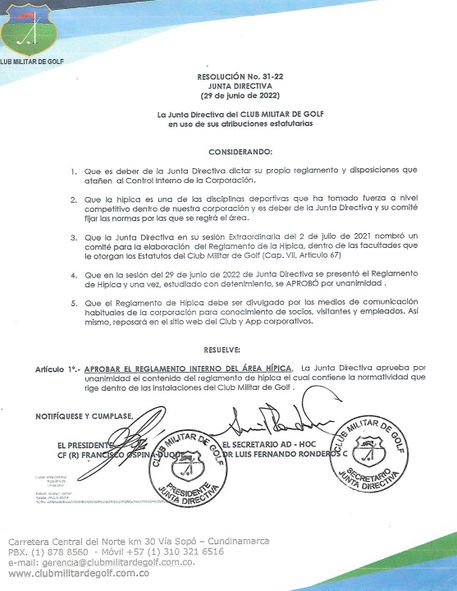En marco de nuestra junta directiva celebrada el 29 de junio de 2022, damos por definido el nuevo reglamento hípico vigente a partir de la fecha.